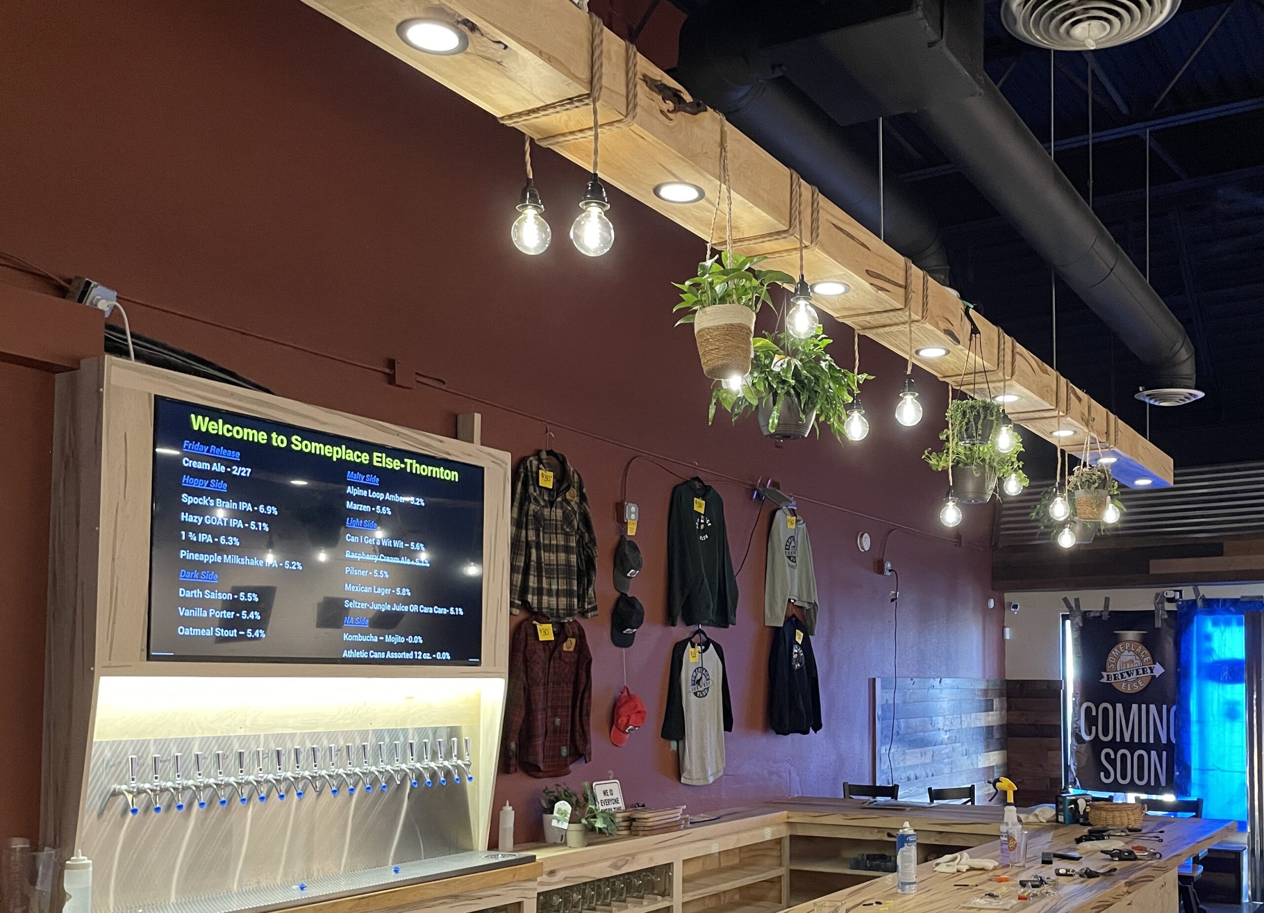 What was built in a garage with some reused kegs, a hobby, and a dream, Ryan and Tori crafted what is now SomePlace Else Brewery. Located in Arvada, Colorado, this “brewcade” is a haven for beer drinkers, pinball and skeeball enthusiasts, and dog lovers, who are looking for a fun, friendly, and easy going atmosphere with a hint of a competitive edge.